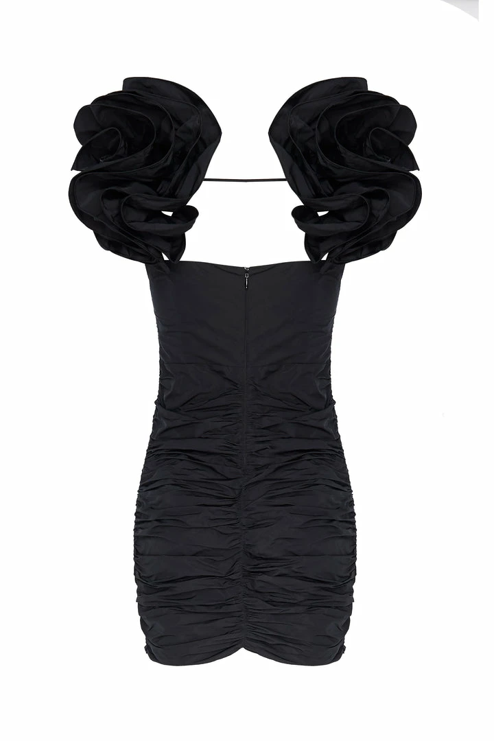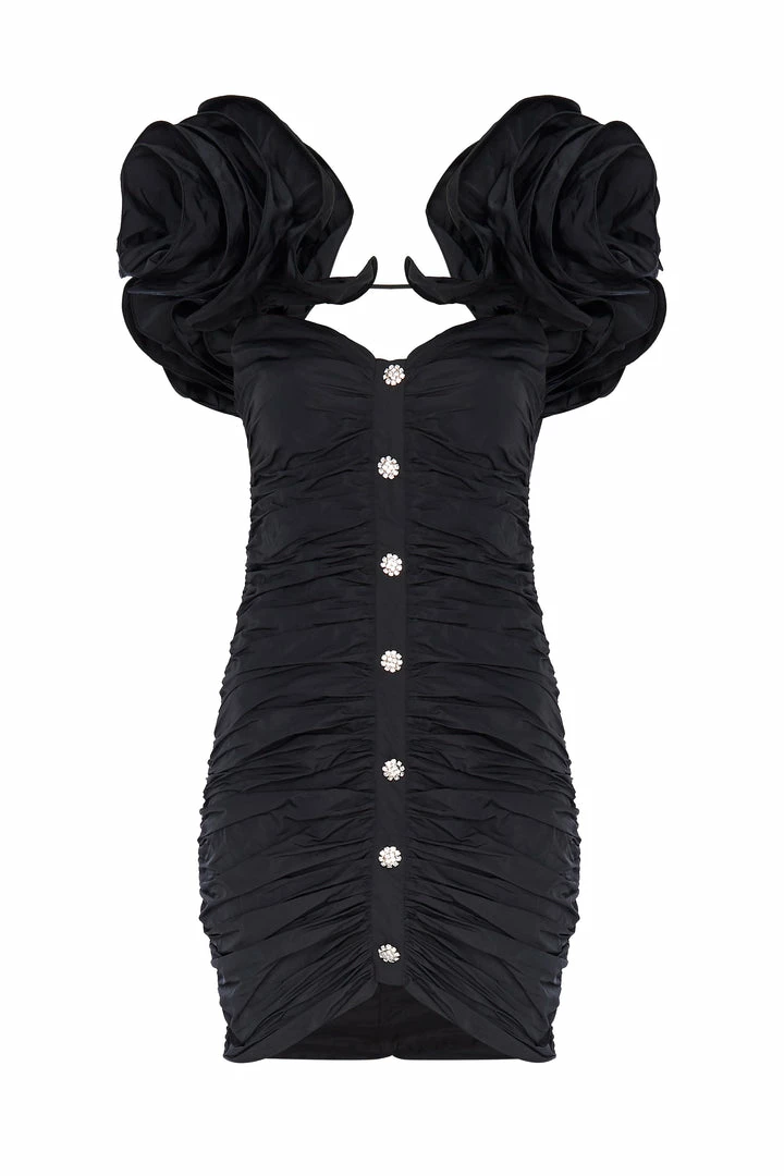 Black silk blend ruched polka dot mini dress from Alessandra Rich.Â