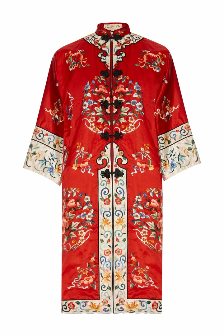 An original Golden Bee Chinese red Kimono circa 1920s; stunning embroideries; very good condition