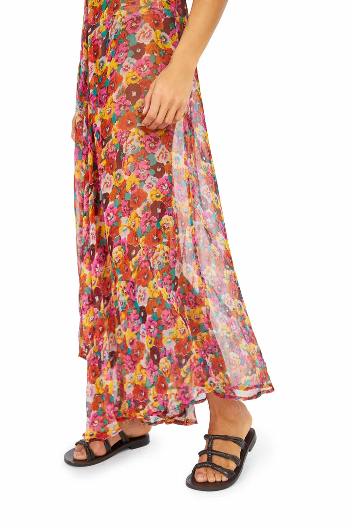 bodice, vibrant overall pansy print, slightly raised waistline, bust approx 92cm, 36in