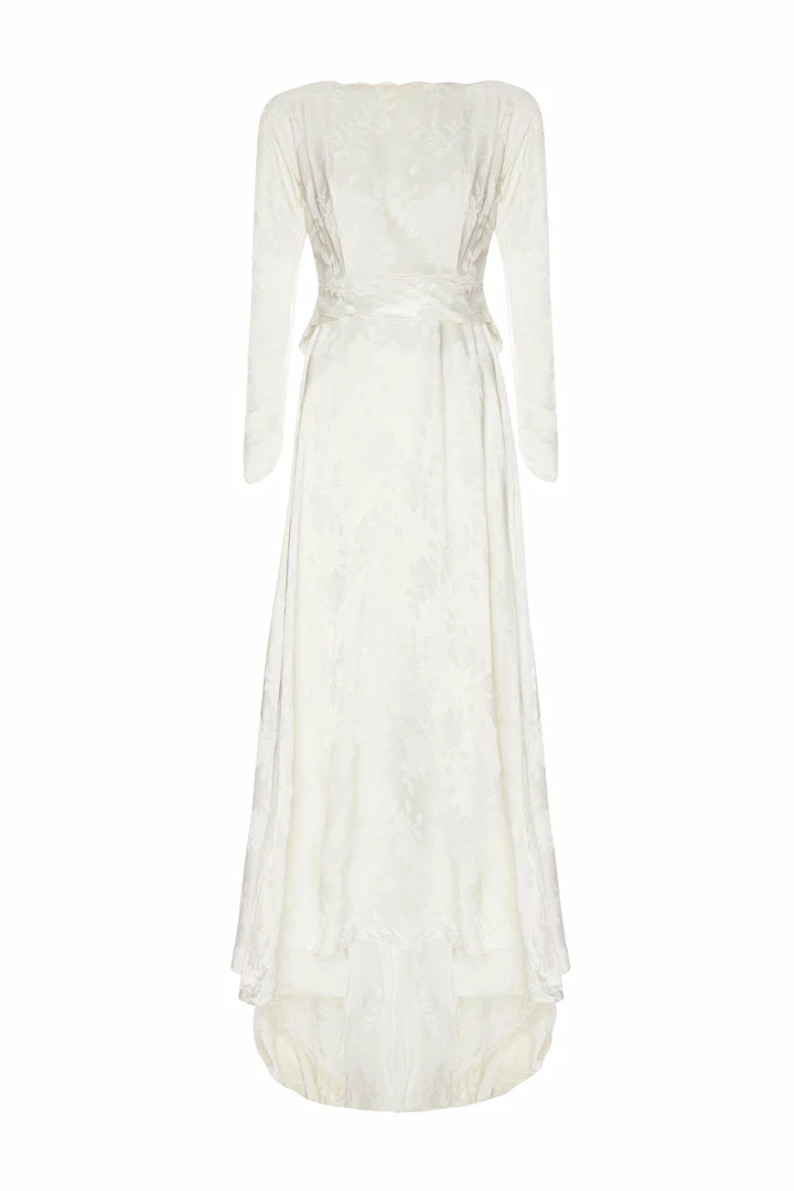 A 1940s vintage long-sleeved white silk wedding dress; in very good condition