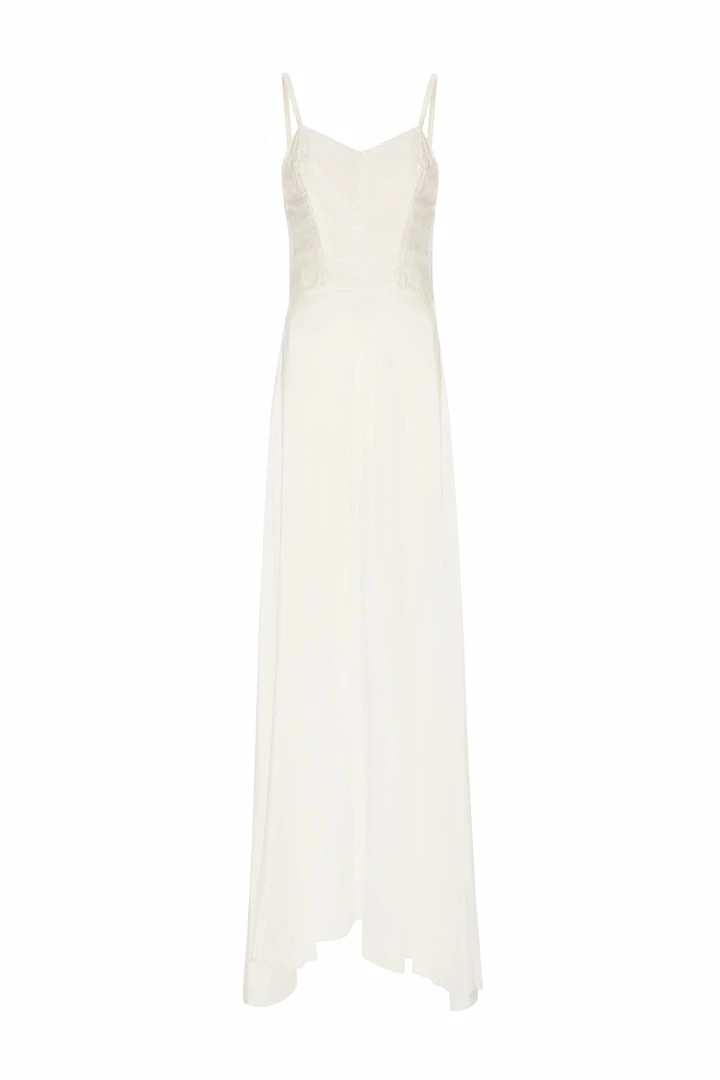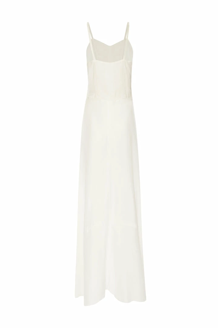 1940s vintage white silk strappy slip dress with lace detailing