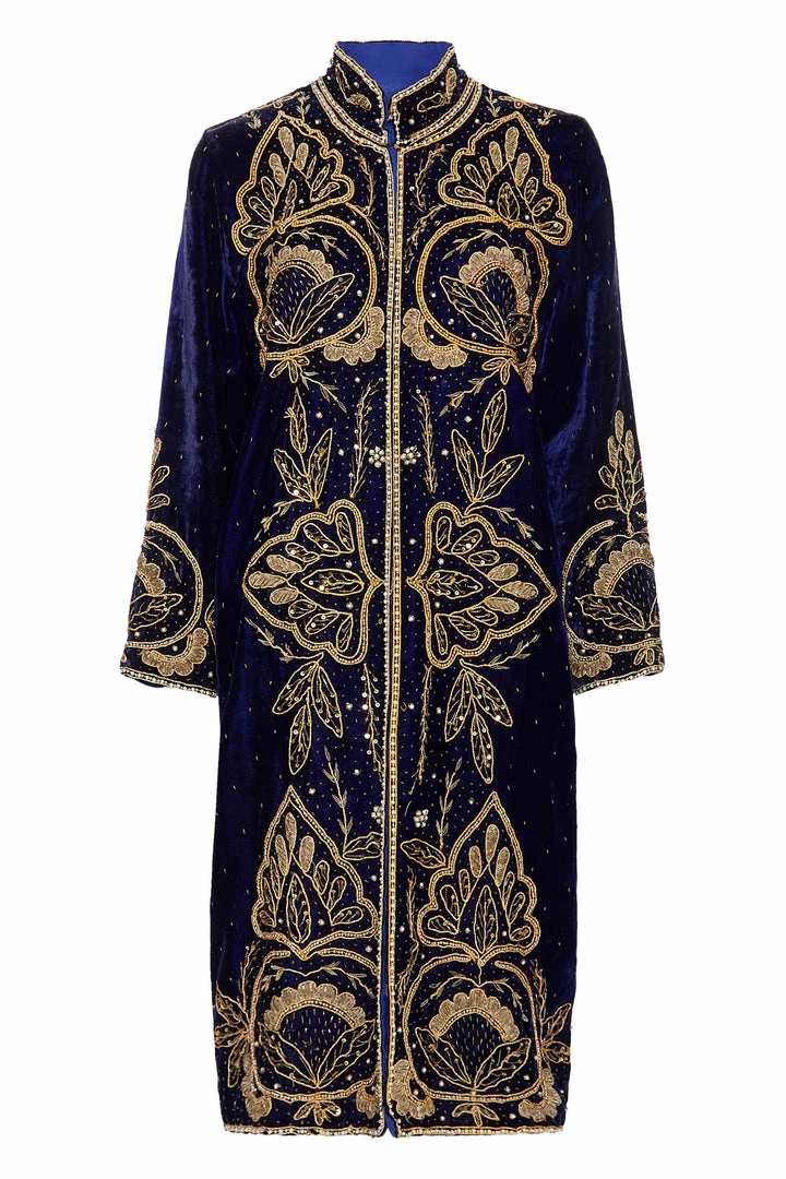 Annie's Archive 1980's Indian Blue Velvet Robe