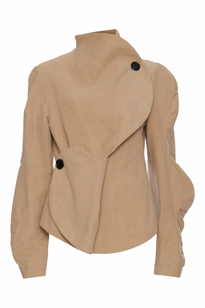 Anglomania Westwood camel coloured cotton jacket; asymmetrical cut and design; winter coat; labelled IT 46; comes with spare button; perfect condition
