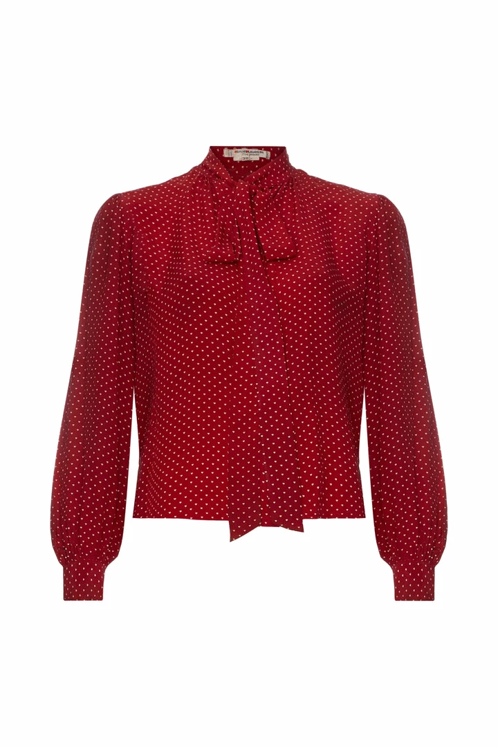 Saint Laurent red heart polka dot blouse; neck tie and in perfect condition
