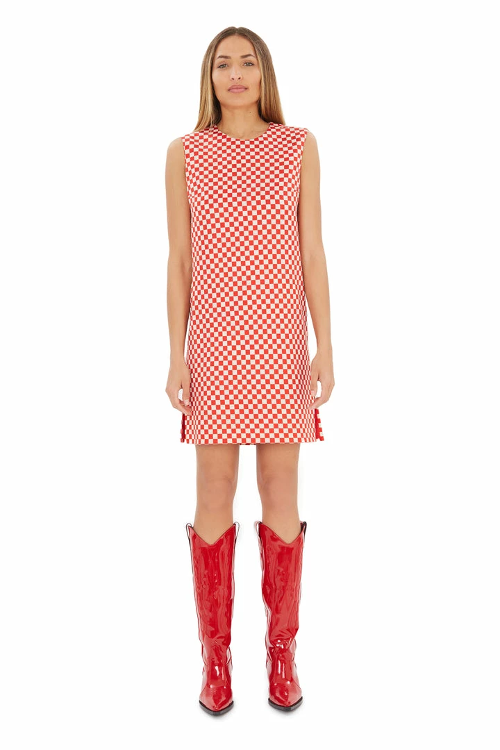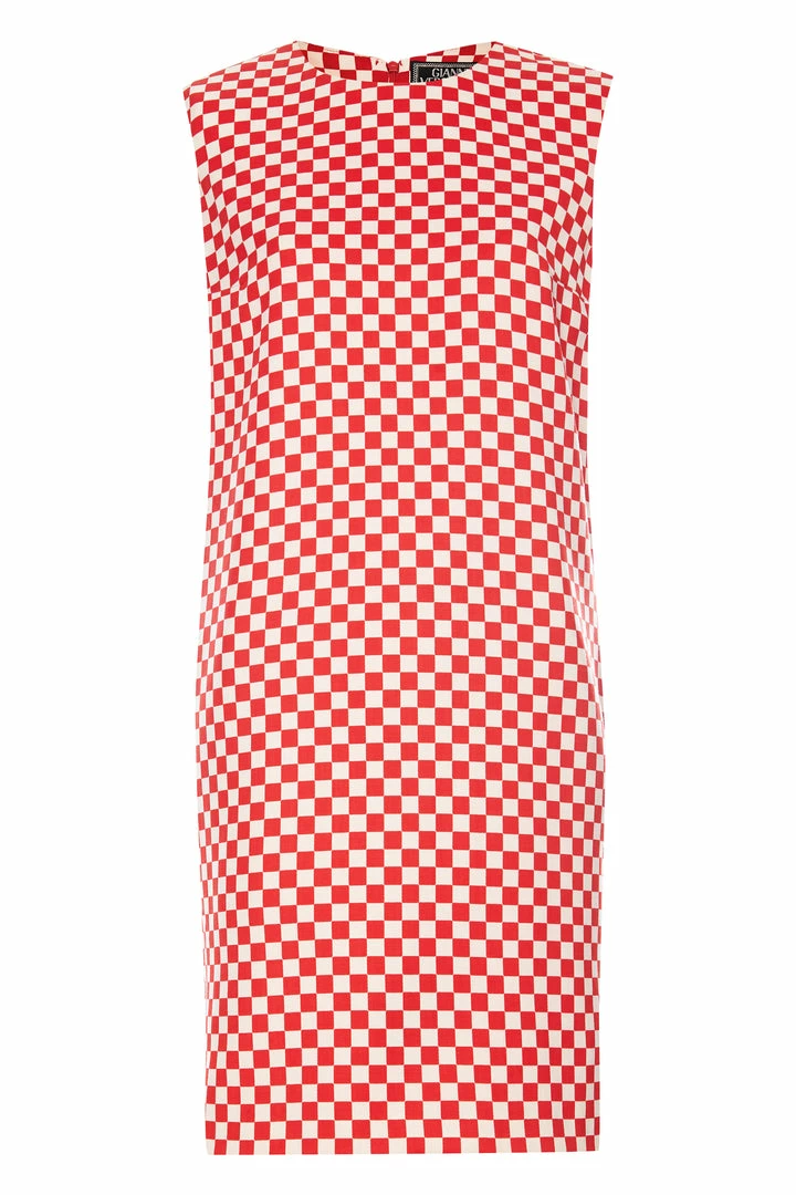 Vintage Gianni Versace Couture red checks dress from Dall Winter 1995 collection, super rare. The dress was seen on the runway worn by Nadja Auermann. Very 60s mod style shape and inspiration.Â