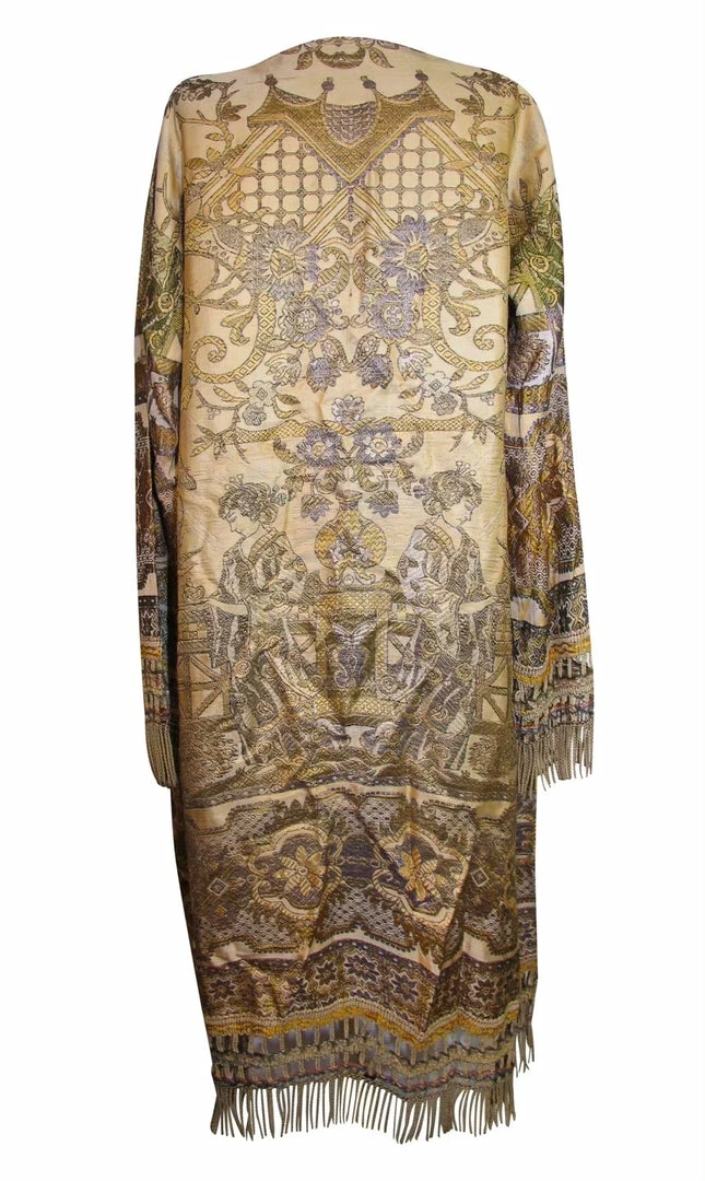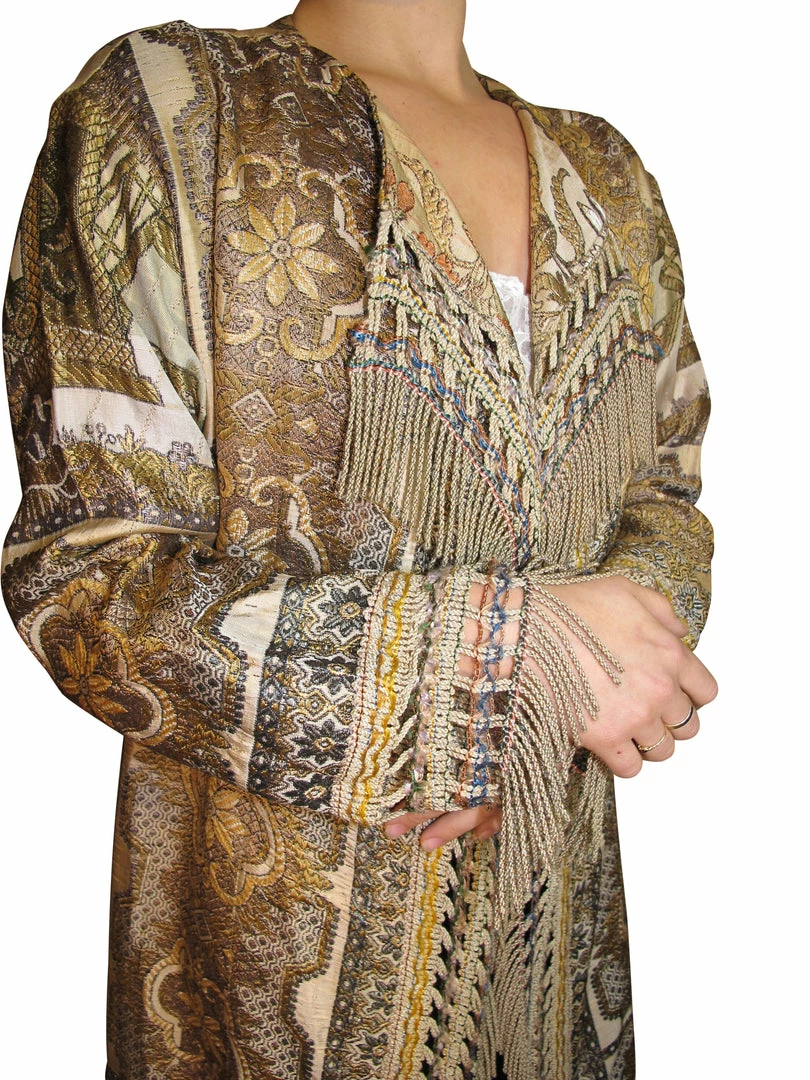 This fabulous one-of-a-kind piece handmade coat is made handmade embroidered silkÂ
