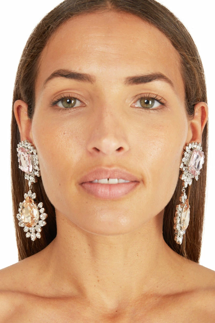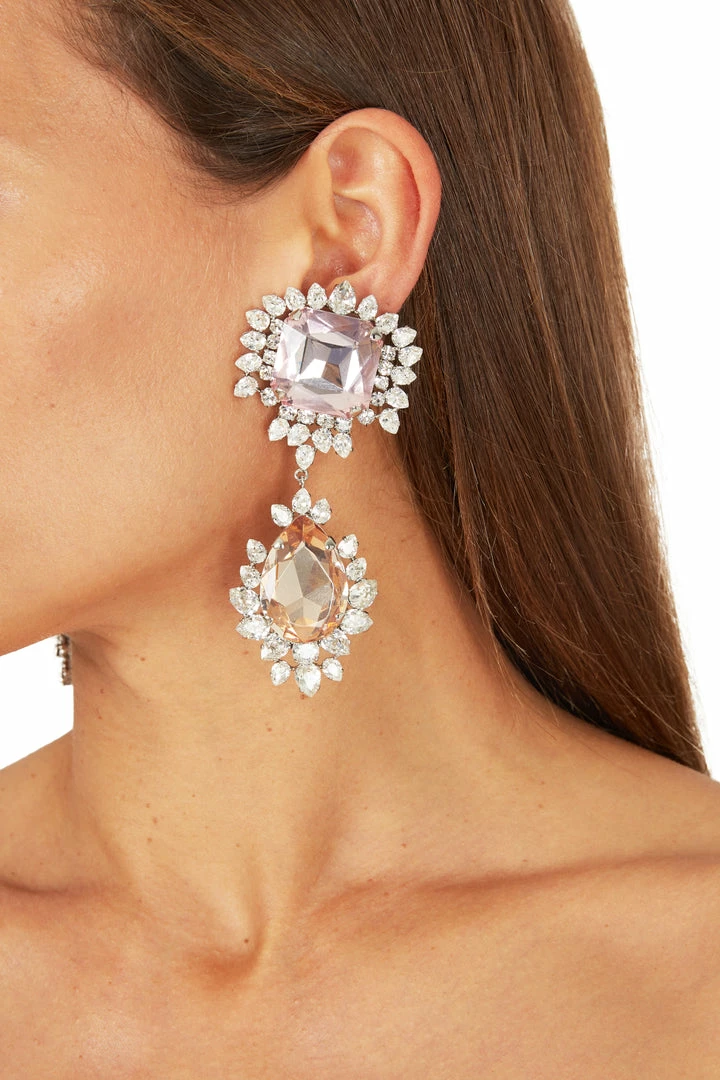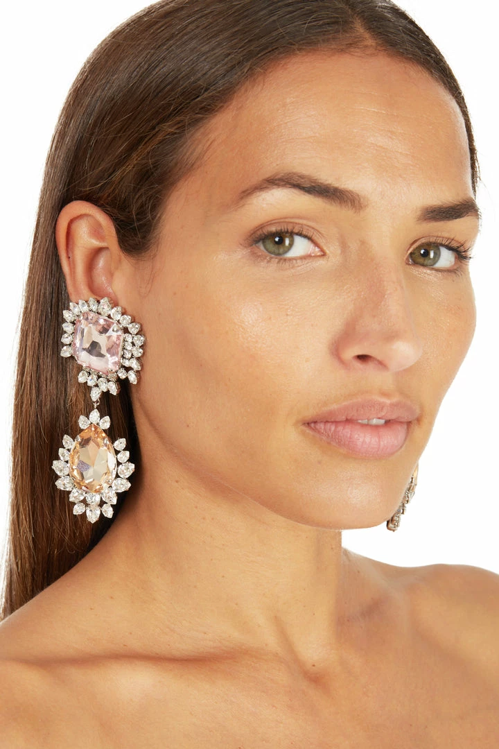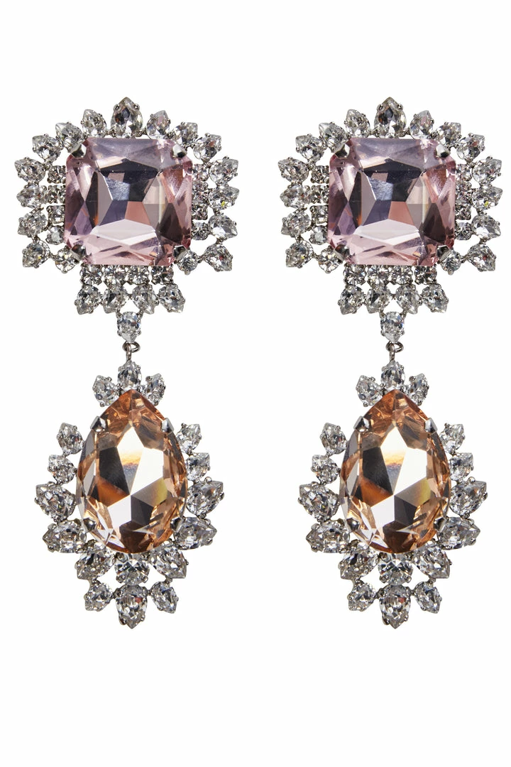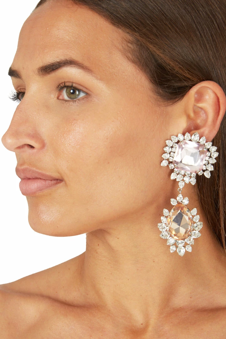 By Giambattista Vali These earrings are embellished with two pink and champagne stones set with glass stones.