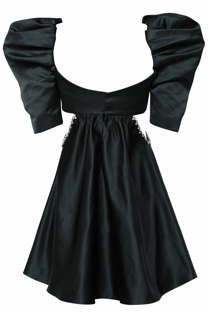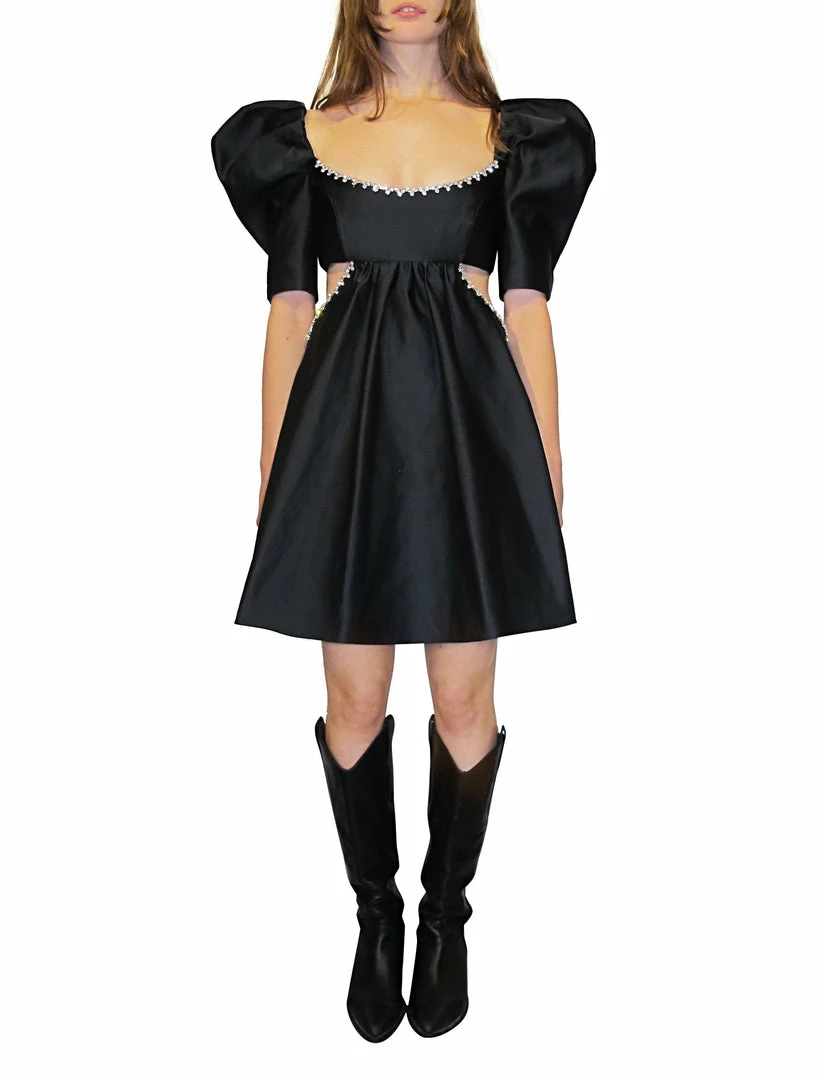 Area Crystal-Trimmed Black Cutout Mini Dress
