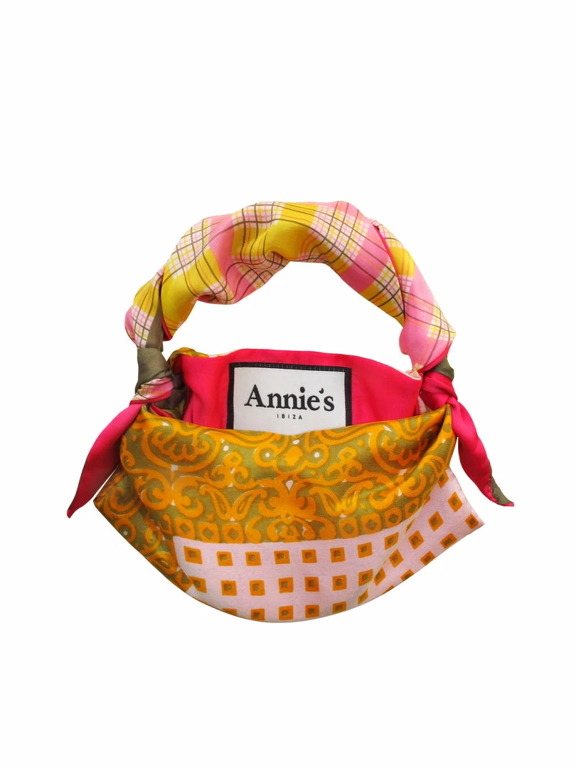 A one-of-a-kind bag made exclusively for Annie’s Ibiza from sustainably sourced vintage scarves dated from the 1970’s – 1980’s