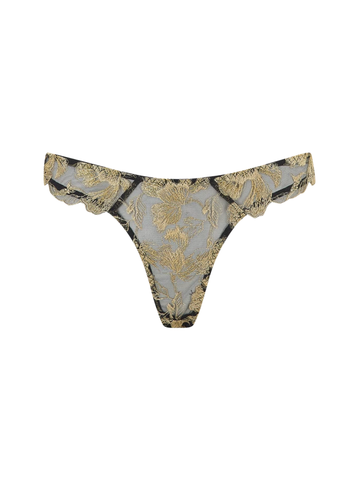 This entirely flattering Coco de Mer staple is brought to new mystical heights with regal gold embroidery and tantalisingly sheer coverage.