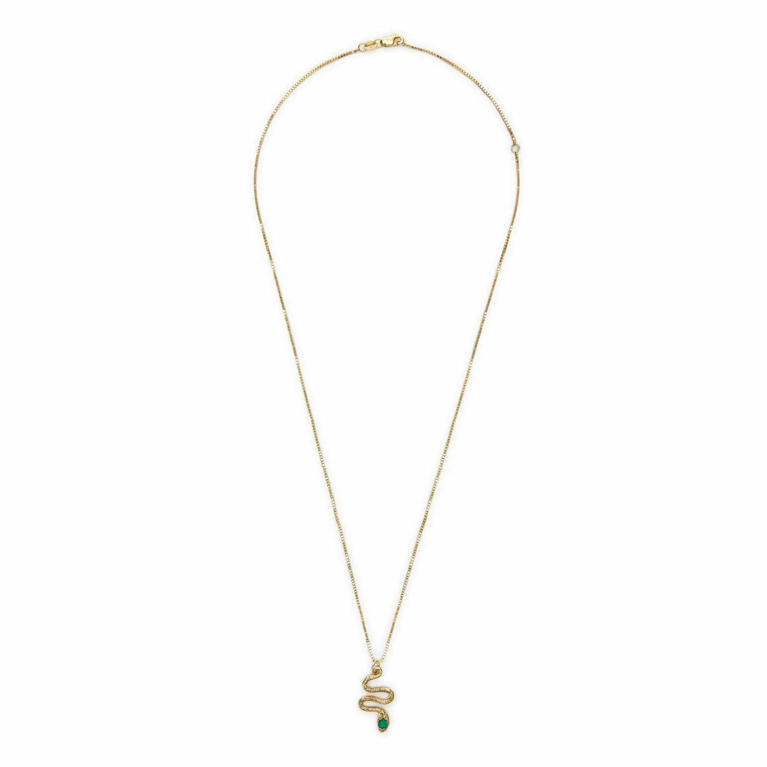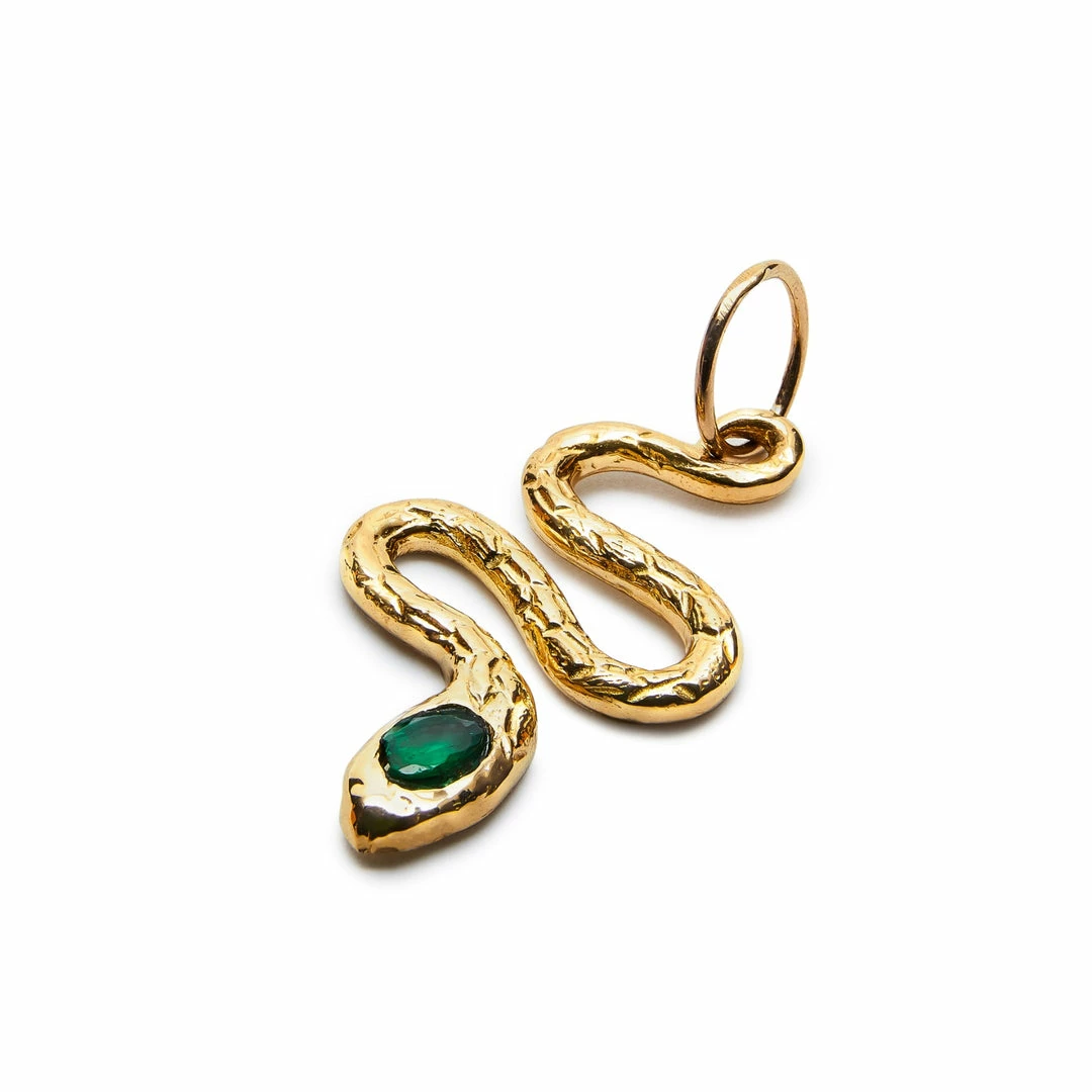14K Solid Yellow Gold snake pendant with a Diamond eye.