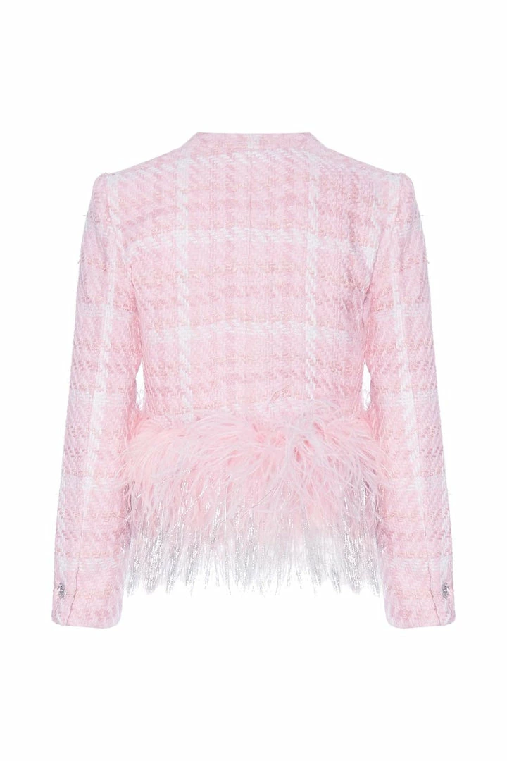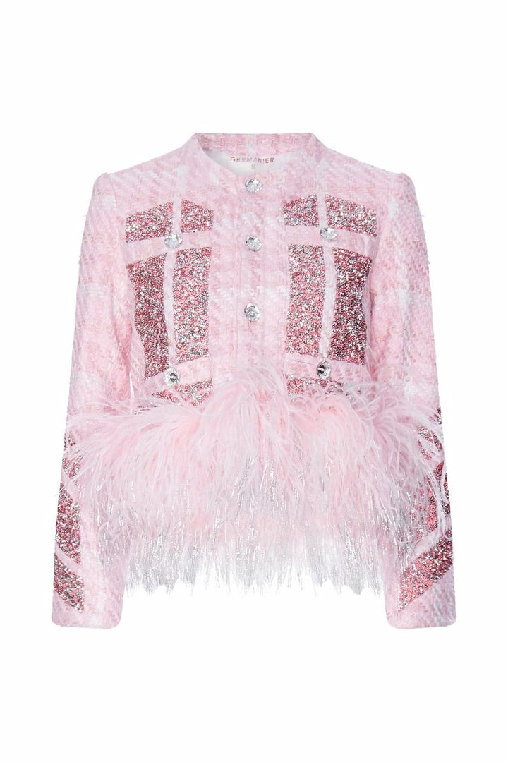 Beautifully hand made knit jacket with adorned with feathers by Kevin Germanier handmade by his own grandmother!
