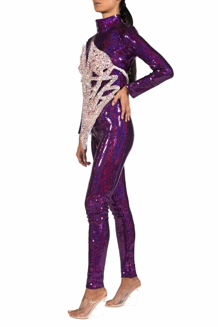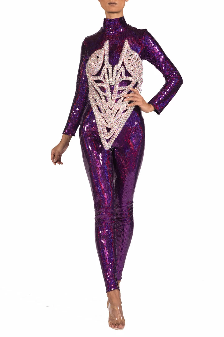 Channel a retro-inspired, glamorous vibe with this sequin embellished catsuit by Jack Irving.Â