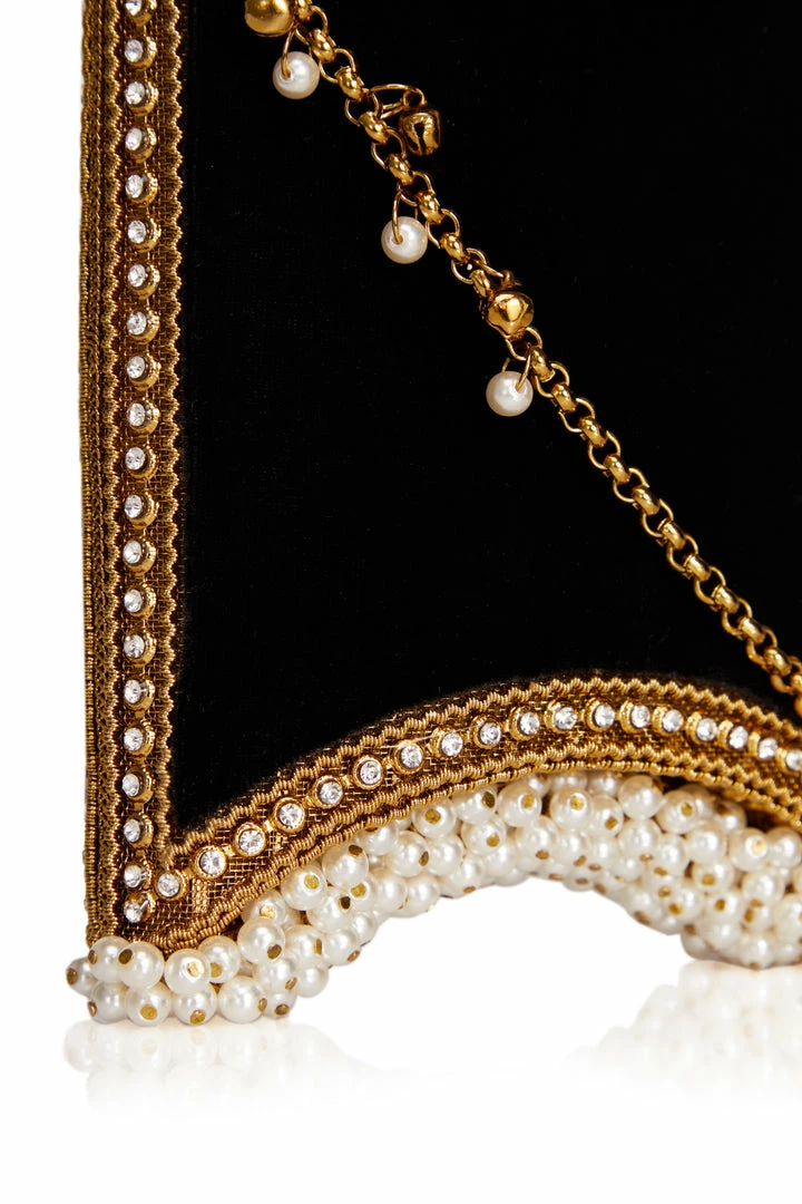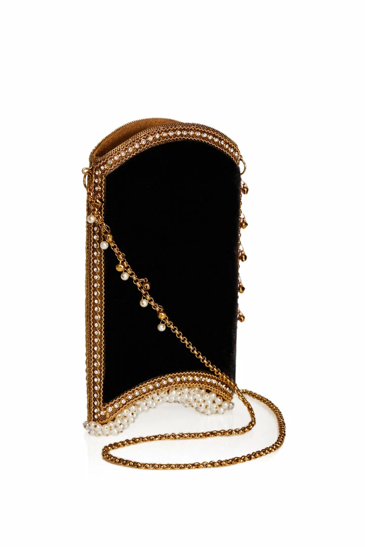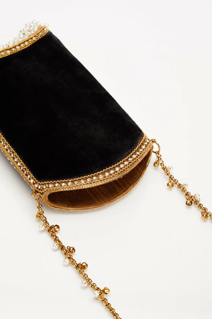 Mae Cassidy Velvet Pearl Cocktail Black & Gold Phone Bag