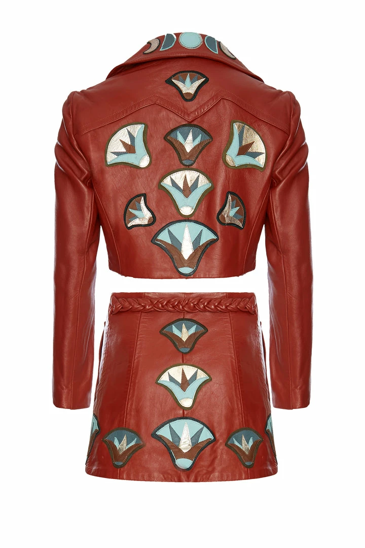 Pair with our Chestnut Brown Leather Cropped Jacket with Lotus Flowers