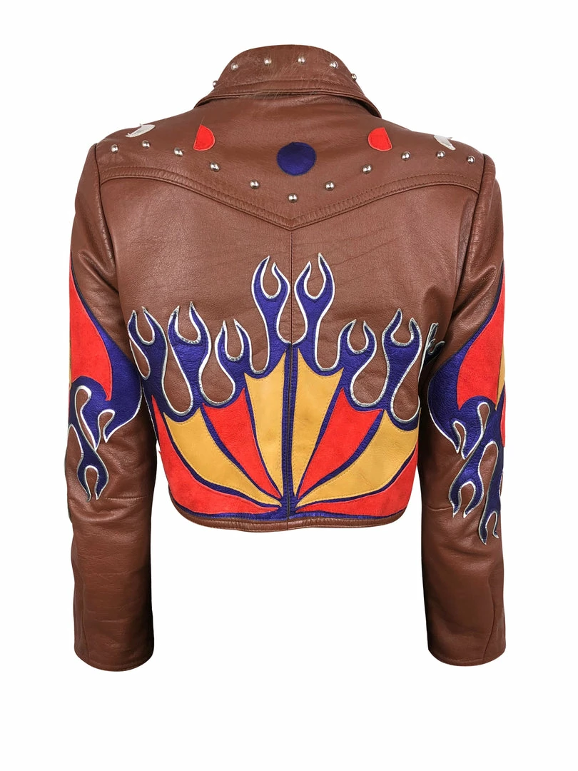 Stunning remodelled vintage jacket with up cycled leather detailing.Â