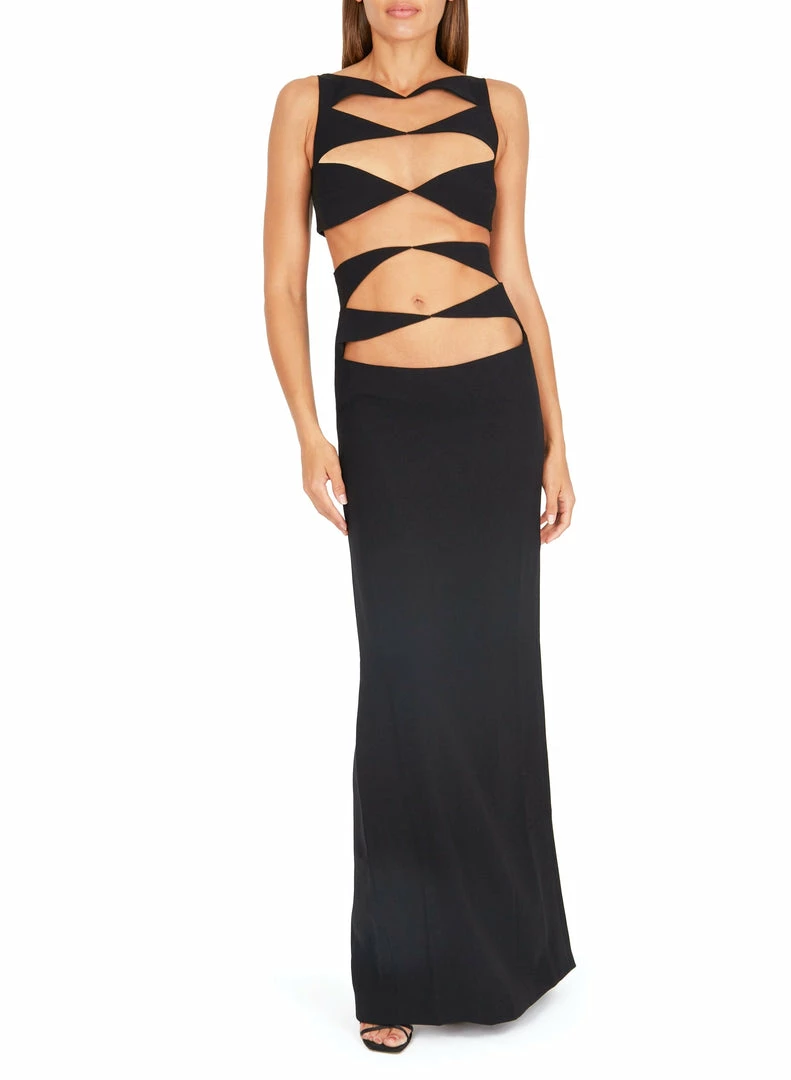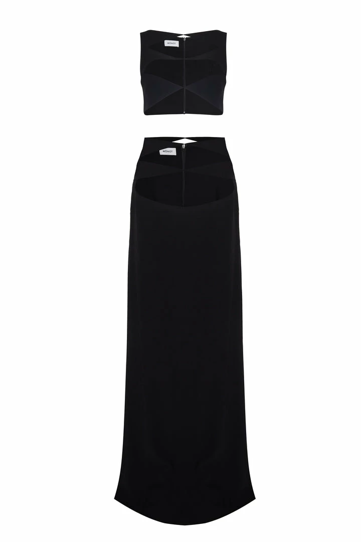 Mônot two-piece dress in technical fabric. Sleeveless cropped top featuring front geometric cut outs and rear invisible zip closure. Pencil skirt with wide back vent, geometric cut outs on the waistband and invisible zip closure.Â