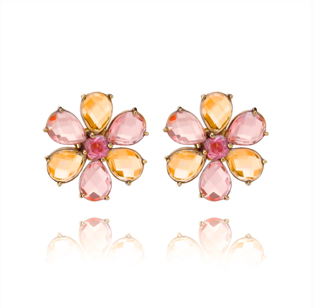 Encrusted with beautiful Citrine & Morganite gemstones, finished with a Tourmaline centre stone, the stone of love.Â