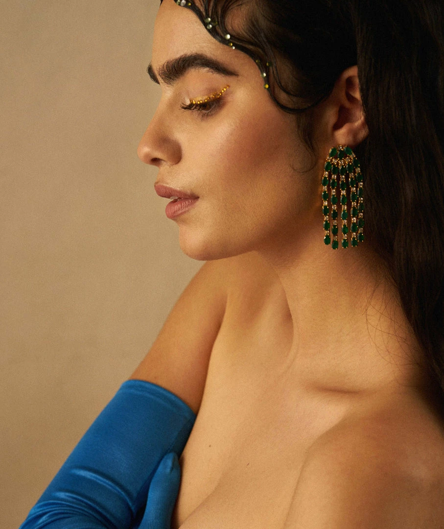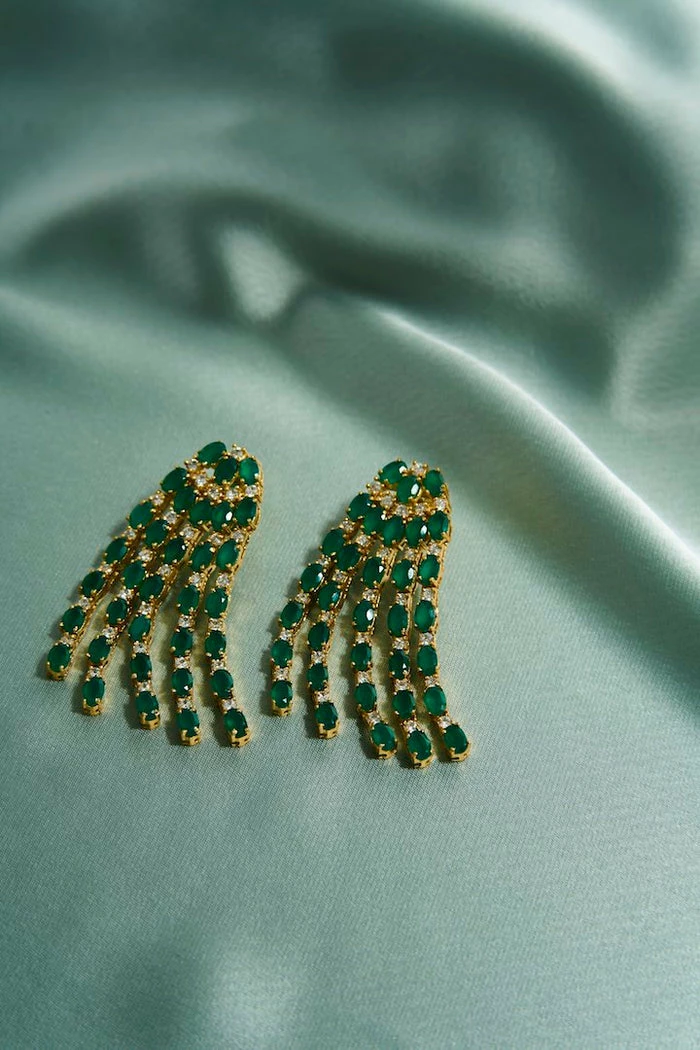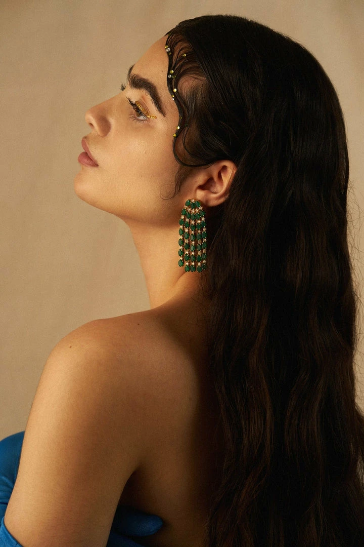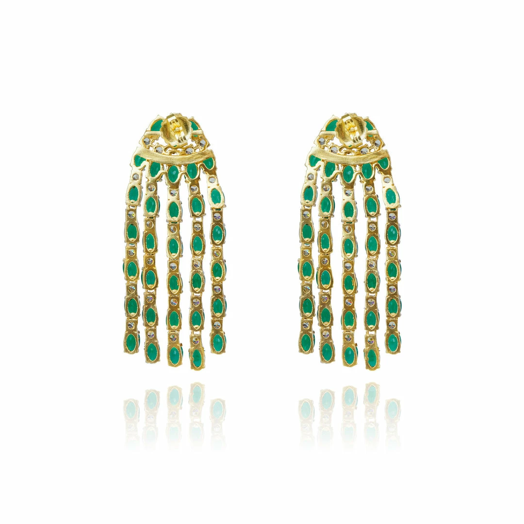 Cascading waterfall earrings with green Onyx and cubic Zirconia stones. Perfect for going out and dazzling. A shiny must-have piece that will impress!