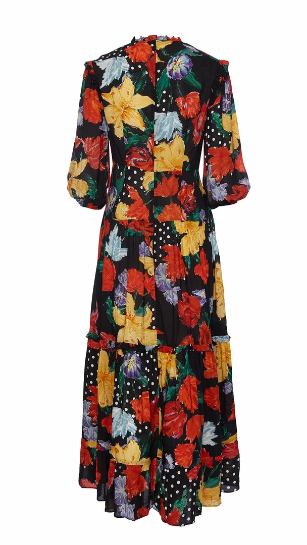 Every RIXO piece is a bold statement. The Monet dress is tailored from silk printed with inspiration from impressionist painter Monet.