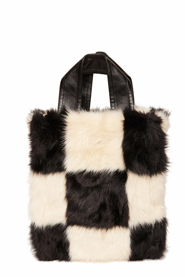 - Faux fur tote bag, supple faux leather handles, one internal pocket