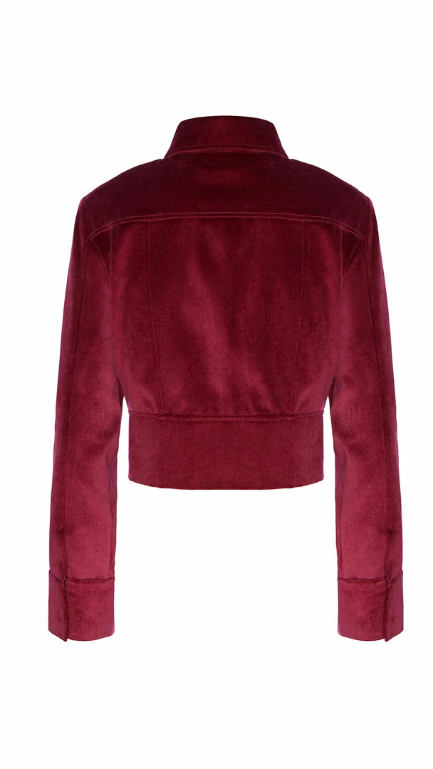 This cropped, fitted jacket is the jacket you have all been missing. Cut to the waist for the ultimate flattering fit and designed as a modern take on a classic 70s style with an oversized collar, longer length arms and luxury popper detailing. Wear yours over a slim-fit roll neck and our high-waisted flared trousers for a true 70s suit or over a tiered dress and boots for the perfect winter-wedding or event look.